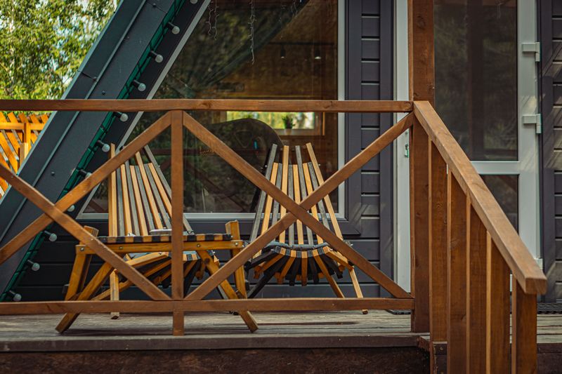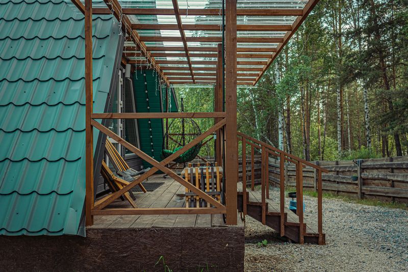 Авторская архитектура: Яркий зеленый фасад и панорамные окна от пола до потолка создают эффект полного погружения в природу. Просыпайтесь среди крон деревьев и наблюдайте за сменой времени суток.